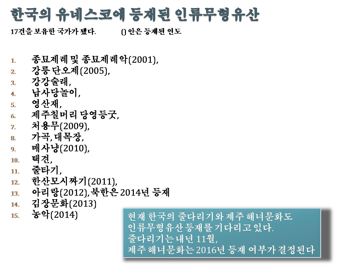 한국의 유네스코에 등재된 인류문화유산